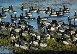 Seuraavaana päivänä Härskiinmutkasta näkyi Kirkkolahden kalatiiramassoissa (115) kaksi lapintiiraa. Havainto oli lajista minulle vasta toinen Parikkalassa! Siikalahden pikainen kierros tuotti pari laulavaa mustapääkerttua, hautovan oloisen kanadanhanhen sekä valkoselkätikan. Iltapäivällä tein lähes edellispäivän kaltaisen Saaren kierroksen Partasen Harrin ja Mortensenin ”rollen” kanssa ja havainnotkin olivat pitkälti identtisiä, sillä kova koillistyyli tuntui pysäyttäneen muuton. Nuorehko merikotka ja kolme koiras sinisuohaukkaa näkyi uusina edellispäivään verrattuna, Pohjanrannassa valkoposkihanhia näkyi nyt 2500.