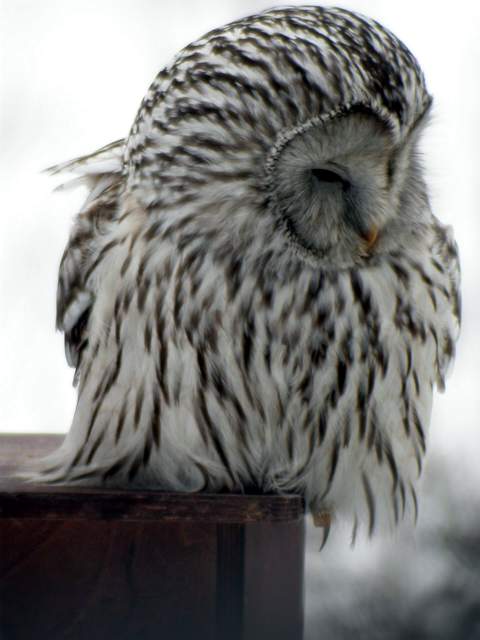 In the beginning of April it was very cold and snowy. First arrived migration birds left back to South. So I didn’t find much to photograph. On the 5th of April Timo Kauppinen called me that he has a Ural Owl sitting in his backyard. Owl had been sitting there and watching the traffic of the feeder. So I decided to leave there on my lunch-hour. After some searching we found the bird and soon it flew to sit over the feeding place. Of course the Owl was in a bad shape, it was hungry and that was why it was so brave. So I could take tens of good pictures of it.