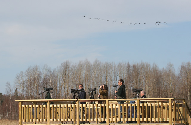 On the 23rd day we had a day when many birders were counting migration all around Finland. In South Karelia we were counting everything from 5 a.m. to 3 p.m. and we were of course in Siikalahti. Altogether we saw 72 species plus a Lesser Spotted Woodpecker and a Wren next to the information centre. The best birds and numbers were 2 Bewick’s Swans, 5 Black-throated Divers, a Slavonian Grebe, 4 Cormorants, 2 Water Rails, 570 Wood Pigeons, 522 Fieldfares, 760 small thrushes, 11 Jays, 3520 Chaffinches and a Great Grey Shrike and so on.