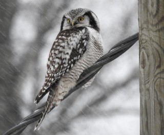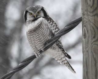 The weather was changing and it really was like winter. It was snowing and windy. I still continued to Joutseno Konnunsuo where I saw a Great Grey Shrike and a Hawk Owl that was posing extremely well.