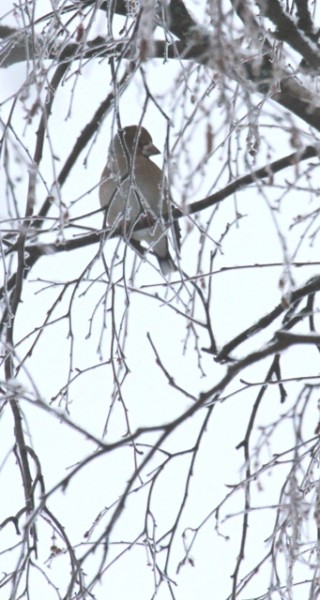 On Saturday the 24th of January we woke up early and soon walked to the best feeder of the village to Garden Twitch. We stayed in the end of Yläkuja from the sunrise until about 40 minutes and counted all birds. We saw altogether 70 Waxwings, 2 Blackbirds, 165 Fieldfares (135 of them were migrating over us), a Coal Tit, 6 Blue Tits, 15 Great Tits, 3 Magpies, 15 Jackdaws, 2 Hooded Crows, 3 Starlings, 20 Tree Sparrows, 20 Green Finches, 25 Gold Finches, 10 Bull Finches, a Haw Finch and 14 Yellowhammers.