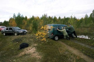 We tried to drive as far as possible this time, but I managed to get my car stuck! So also those twitchers that were driving behind us had to stop because we were on their way! Luckily we managed to pull my car from the mud pretty easily. We all decided to leave the cars there and continue by feet. Only Juha Markkola and his team were trying to get further by his Lada.