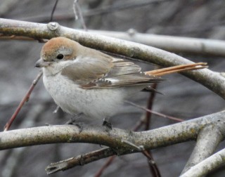 Soon after that I found the Turkestan Shrike that was perching on the branches! It was showing extremely well for 5 minutes but then disappeared behind the pile. And of course after that many twitchers started to arrive!