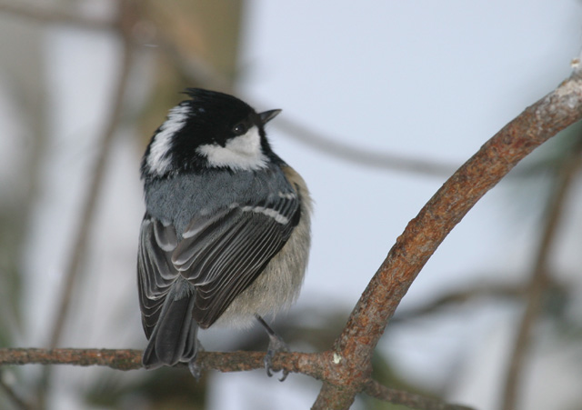 The next better day was the 12th of January when I was birding with my Catalan friend Dani Burgas. It was the first real winter day and the lake Simpele went completely frozen during the morning. We had a good start for the trip in Siikalahti where 2 Hazel Hens, 2 White-backed Woodpeckers, a Lesser Spotted Woodpecker, a couple of Chaffinches and 23 Black Grouses were seen. After one more Hazel Hen we continued to Simpele where a Dipper and a Hawfinch were seen and many Willow and Coal Tits were easy to photograph. In Pitkätsolaset we saw the Hawk Owl again but later in the evening only a flock of 7 Waxwings were seen. But we had a good 4 hours trip!