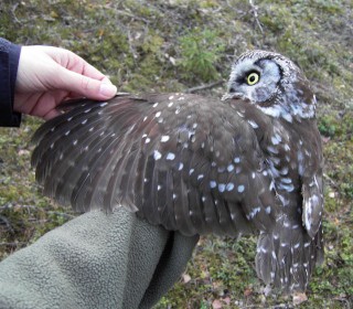 We continued checking the owl nest-boxes but unfortunately almost all the nest-boxes were empty. Only on new Tengmalm’s Owl was found and surprisingly there were alresdy 5 nestlings too! The female was of course ringed but the nestlings have to grow bigger. On my birthday on the 2nd of May the weather was very cold so my only birthday-tick was another female Tengmalm’s Owl that we ringed from one of the nest-boxes. On the first 3 days only other observations were a couple of female Capercaillies and a Grey-headed Woodpecker.