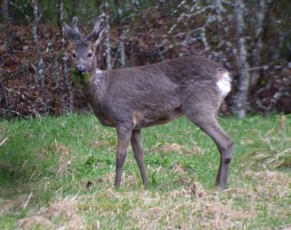 When I got home I slept 1.5 hours and after that went to run with a couple of my friends. After that we left to check owl nest-boxes with Harri again. And again there were no owls but we saw something really amazing – a Willow Grouse! It was the first one in South Karelia for decades!!! It flushed next to our car and Harri saw it very well but I saw it only when it crossed the road and disappeared to the forest! We also saw a male Capercaillie lekking and a Roe Deer which I managed to digiscope well.