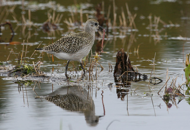 24.9. saattoi herätä valkoposkien ääneen. Aamuhämärissä kuului sisälle ainakin yhdeksän hanhiparven äänet. Suuntasimme hanhiretkelle Saarelle ja heti alkoi näkyä länteen suuntaavia hanhiparvia. Pohjasuota kompatessamme ylitsemme muutti jo reilut 3000 hanhea ja mullokselta löytyi nyt 3 heinäkurppaa, 5 jänkäkurppaa, 35 taivaanvuohta, tylli ja 41 kapustarintaa ja pikkulintuparvista 10 kiurua, lapinkirvinen, hemppo, tikli sekä 62 kottaraista – paikalla oli jopa 8 lajia, joita emme edellisviikonlopun pinnarallissa havainneet lainkaan! Jyrkilän pelloille saapuessamme näimme Rautjärven suunnassa noin 6000 valkoposkihanhen parven ilmassa ja pelloilta löytyi vielä 4000 lintua lisää. Ylitsemme muutti vielä 2000 valkoposkihanhea ja pelloilla oli 163 laulujoutsenta, joista kolmelta luimme kaularenkaan. Uukuniemen Suurenjärvenlietteellä (Lammintaus) oli useampikin autokunta metsästäjiä, joiden kanssa rupattelimme tovin katsellessamme paikallista 500 valkoposkihanhen parvea, jossa oli mukana 50 metsähanhea. Muuttohaukka lensi myös ohitsemme.