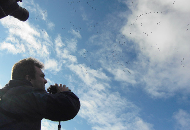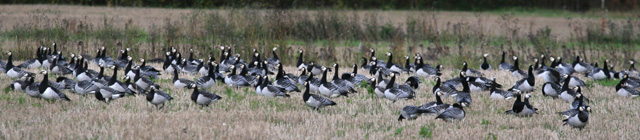 Muutto jäi vielä jatkumaan, kun lähdimme kotimatkalle. Kanavalammella näkyi vielä isolepinkäinen ja Tarassiinlahdella muutti kalasääski ja pellossa oli 5000 valkoposkihanhea ja vielä 1500 lintua muutti ylitsemme. Akanpellolla päivysti piekana ja Rautalahdella näkyi vielä 3400 valkoposkihanhea, 2 sepelhanhea, 2 tundrahanhea ja 12 metsähanhea. Illalla muuttavien valkoposkihanhiparvien ääntä kuului ikkunoiden läpi vielä pilkkopimeässäkin. Yhteensä päivän aikana havaitsimme noin 40000 hanhea eli melkoinen hanhipäivä!