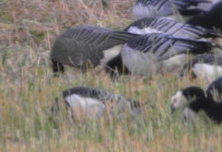 Päivä meni taas pelihommissa, mutta illalla innostuin Punnosen Pekan kanssa bongaamaan Kiteen Puhoksesta pikkukanadanhanhea. Lintu oli kuin olikin aivan aidon näköinen ja vaikka se oli 2000 valkoposkihanhen parvessa, oli se hyvin näkyvillä 6-tien varresta. Alalajin määritys on näistä hankalaa, mutta kyseessä voisi olla tälläkin kertaa minima, vaikkei lintu niin tumma olekaan kuin aikanaan Saarelta löytämämme Suomen ensimmäinen minima.