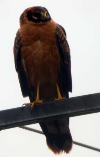 Pian taas istuimme autossa Markon ja Helkan kanssa, ja koska kiirettä ei ollut, päätimme ajella pitemmän kaavan kautta. Niinpä teimme ensimmäisen pysäyksen Limingan Virkkulassa, jossa näimme mm. merikotkan ja pulmussirrin. Seuraavaksi ajoimme Oulaisiin bongaamaan siellä pesineitä arosuohaukkoja. Sää oli kuitenkin taas sateinen, ja pari tuntia eri arosuopaikkoja koluttuamme olimme nähneet vain pari sinisuota sekä isolepinkäisiä ja olimme jo luovuttamassa, kun löysimme eräästä joesta 5 kyhmyjoutsenta. Olivat muuten Oulaisten kautta aikain ensimmäiset gnölikset! Styrokseista innostuneena päätimme vielä kertaalleen yrittää arosuota paikasta, jossa edelliskäynnillä oli satanut kaatamalla. Nyt Helka huomasikin haukan istumassa erään tolpan nokassa, ja siinä se vihdoin oli komea arosuohaukkanuorukainen, joka vieläpä päästi meidät hyvälle kuvaushollille.