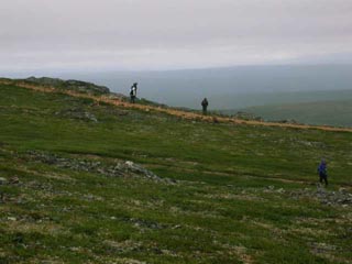 19.7. siirryimme heti aamusta venekyydein Tenojoen toiselle rannalle, jossa Kevon tutkimusasemalla syödyn aamiaisen jälkeen suuntasimme ensimmäiselle retkelle Jesnalvaaralle. Meidät kyydittiin ensin venekyydein polun lähtöpaikalle, josta aloitimme todella helteisen nousun Jesnalvaaran rinteelle. Osa porukasta kulki rivakammin, jotta ehtisi valloittamaan huipun ja ehkä etsiä paljakan lajistoa, osan kulkiessa Markon ja Hannan kanssa hitaammin kasveja tutkien. Retkellä havaittiin runsaasti Lapin peruskasvilajistoa, mutta lintupuoli oli varsin vaatimatonta. Paras lintuhavainto oli ilman muuta rinteessä laulanut taviokuurna, mutta myös mm. riekkoja, kapustarintoja, ampuhaukka ja lapintiaisia nähtiin. Muutaman tunnin hikisen kipuamisen jälkeen palasimme takaisin rantautumispaikalle, josta meidät kyydittiin takaisin asemalle lounaalle.