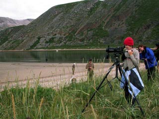 Sitten lähdettiinkin paluumatkalle tosissaan. Ainoan pysähdyksen teimme komean merikotkan vuoksi, joka antoi kaikkien tarkkailla itseään kaukoputkella, ennen kuin se otti ja näytti itsensä lennossakin. Mårtensnesillä suoritimme pikaisen kulttuuripysäyksen historiallisella asuinalueella, jolla nyt saattoi nähdä hautoja ja erilaisten asumusten pohjia. Pakollinen viimeinen jäämeripysäys suoritettiin tietysti Varangerbotnissa, jossa viimeisetkin kurssilaiset pääsivät näkemään ristisorsia sekä myös pilkkasiipiä.