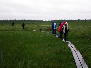 Tankavaarassa tutustuimme Koilliskairan luontokeskukseen, josta jatkoimme Sodankylän Ilmakkiaavan soidensuojelualueelle. Keli oli sateinen, mutta linnusto ja kasvillisuus olivat aivan erityyppistä kuin mitä olimme nähneet, joten kuski sai yksin pyöritellä päätään ilmastoidussa autossaan muiden ihmetellessä mustalintupoikuetta, uiveloita, sinisuohaukkaa, erilaisia saroja, raatteita ja keltasompasammalta.
