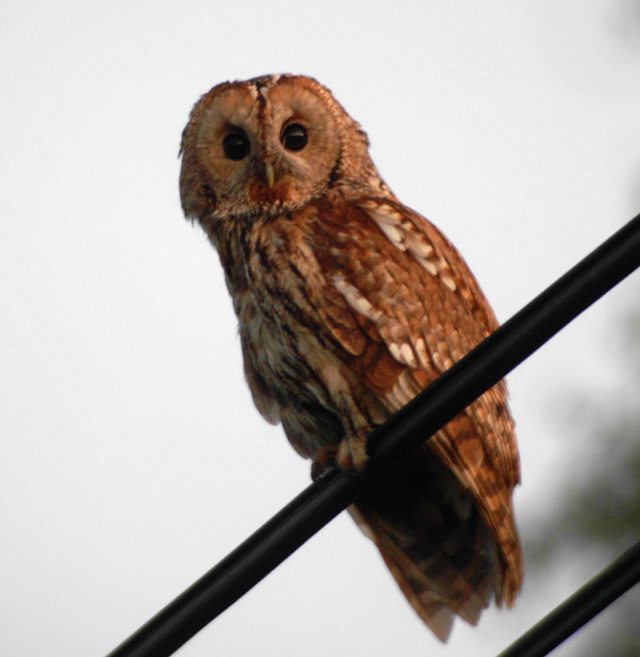 Aamuvarhain itse lähdin kohti Hankoa. Hannalla oli asioita hoidettavan Helsingissä ja hän palaisi jo illaksi kotiin Parikkalaan, mutta itselläni oli edessä parin päivän riuttatiirastaijausprojekti. Kolmen jälkeen aamulla olin jo ajamassa Lohjalla, jossa plokkasin langalla istuvan lehtopöllön, josta sain otettua kohtuullisia kuviakin. Ja uskokaa tai älkää, tämä oli ensimmäinen kerta eläessäni, kun näin lehtopöllön hyvin!