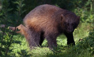 Yö oli jo pimentynyt, kun vihdoin alkoi taas tapahtua. Valitettavasti oli jo liian pimeää kuvaukselle, mutta ahmoja oli aivan mahtava seurata, kun ensin hieman ennen puoltayötä saapui taas sama arpiselkäinen naarasahma etsimään ja kätkemään herkkupaloja ja pian tämän jälkeen saapui pienempi, tummempi ja selvempiraitainen koirasahma ja yhteensä saimme seurailla 45 minuuttia ahmojen touhuiluja aivan kojun lähellä. Ja parinkymmenen minuutin tauon jälkeen saapui taas ensin naarasahma kymmeneksi minuutiksi ja vielä kerran pimeän vallitessa klo 01:35, mutta singahti nopeasti matkoihinsa, kun suuri hieman iltaista tummempi ja vaaleampikauluksinen karhu saapui vaivihkaa paikalle. Nalle pyöri pitkään haravoiden maastoa ja löysi lopulta purtavaa sekin ja katosi varsin pian metsän hämärään. Vielä aamu kahden ja kolmen välillä kävi naarasahma kahdesti ja koiras kerran nopeasti etsimässä lisää ruokaa, mutta ne eivät enää oikein sitä löytäneet. Kolmen jälkeen kuulimme ensin pari kertaa majavan läiskäytyksiä järven selältä ja klo 3:25 se saapui hetkeksi uiskentelemaan kojumme lähistölle kadoten uiden kuitenkin kohta takaisin järvelle.
