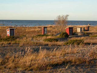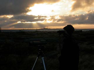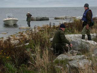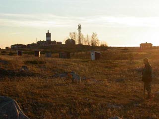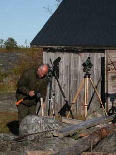 ”Aamuhämärissä päätimme suunnata veneen keulan kohti Västraa. Wege revitteli lajeja Östralla, kun muut rantautuivat Västralle. Eilenhän siellä oli ollut mukavasti lajeja, mutta yöllä vallinnut hyvä muuttosää oli lähestulkoon tyhjentänyt saaren. Havaittiin sentään Västralla tiltaltti, 3 pulmusta, lapinsirkku (aiheutti kähmyilyllään komppaajissa pientä singahtelua), suosirri 1p, suopöllö 1p, sepelhanhi. Helstolan Hessun avustuksella hoidettiin vielä pikkuvarpunen: oltiin jo veneessä lähdössä kohti Östraa, kun Jannen puhelin soi. No, ei muuta kuin putki takaisin jalustaan kiinni. Siellähän se pikkuvarpunen nökötti majakan kaiteella! Östralla kompattiin porukalla rannat, tunturikiuru saapui pohjoisen suunnalta tippuen länsikärjen tuntumaan. Pere saapui idästä saareen, vaihdossa lähti pari nisarin riepua. Samanlaisiksi rievuiksi voisi päivän perusteella luonnehtia Östran miehittäjiäkin, kyllä oli iltapäivällä joka pojalta veto pois! Silti kompattiin koko saari, ehkä se rari löytyy sitten huomenna (lähtöpäivänä)? Allekirjoittanut haluaa kiittää vieraanvaraisuudesta ja hyvästä huoltopolitiikasta, mielellään tänne tulee joku toinen syksykin! ”