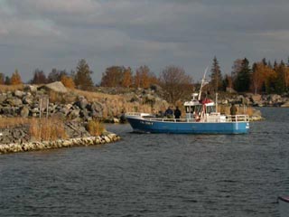 Venematka sujui Stolpenin kyydissä oikein mukavasti ja vajaassa tunnissa rantauduimme Västralle, jonne kaikki, paitsi me Antin kanssa, jäivät. Me jatkoimme vielä tovin Östran suuntaan, ja pian näimmekin Maurin ja Aarnen, jotka tulivat meitä vastaan Maurin veneellä. Oli melkoinen suoritus lastata kohtuullisessa tuulessa tavaramme suuresta kalastajapaatista Maurin veneeseen. Varsin pian olimme jo rantautumassa kotisaarellemme Östra Norrskärille.