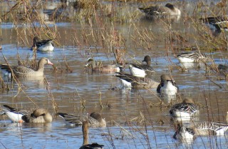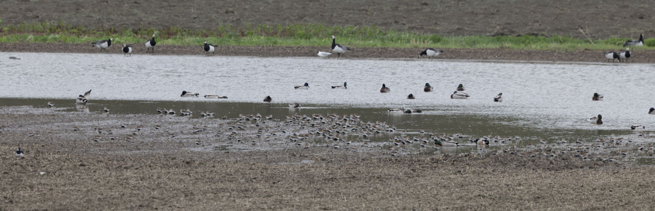 Perille päästyämme kuului huitti lähes saman tien, mutta aika kaukaa se kuulosti mielestämme enemmän pikkuhuittimaiselta, kuitenkin hieman kuivemmalta ja tietysti myös vaimeammalta. Karri kertoi saaneensa linnusta myös äänitystä, joten minun ei tarvinnut lopulta ottaa kuin lyhyet dokumenttiäänitykset. Kello painoi päälle, sillä minun piti olla klo 7:30 töissä mutta onneksi seitsemältä löysimme läheisen maatilan isännän ja saimme neuvoteltua seuraavalle illalle yhteisbongausluvat. Bongauksen, Karrin kanssa jutustelun ja selvittelyjen ohessa olimme havainneet valkoposkihanhia, metsähanhen, ruisrääkän, luhtahuitin sekä palokärjen. Ja lopulta työpäiväkin meni mukavasti yhteisbongausta suunnitellessa ja Karrin kuvia ja äänityksiä jakaessa ja ihmetellessä.