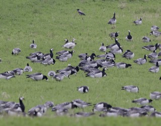 Jatkoimme kärkeen staijaamaan merelle, mutta edelleenkään merellä ei juuri ollut liikettä. Lähiluodolla oli niittykirvisten seurana ainakin kaksi luotokirvistä, merellä lensi riskilä, neljän ruokin parvi sekä kolme pilkkasiipeä. Taas kuului pari urpiaistakin ja suosirri näkyi luodolla. Autoille palaillessamme kuulimme vielä laulavan luhtakerttusen.