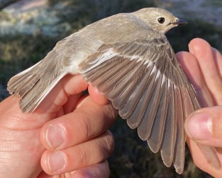 Ja koska sinipyrstökin oli käynyt varoittelemassa varpuspöllöä, päätimme vielä kerran yrittää sitäkin. Siirsimme verkon vielä uuteen paikkaan ja kuinka ollakaan sinipyrstö tupsahti pian verkkoon ja niinpä Etelä-Karjalan ensimmäinen sinipyrstörengastus näki päivänvalon.