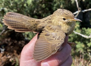 Kun aikaa vielä oli puolisen tuntia jäljellä, päätimme Teon kanssa tehdä pienen kierroksen saaren niissä osissa, missä ei näyttänyt olevan pesimälinnustoa. Pienellä kävelyllä löysimme mielenkiintoisimpana laulavan luhtakerttusen, joka piti varmuuden vuoksi kaivaa näkyviinkin määrityksen sataprosenttisen varmistuksen vuoksi.
