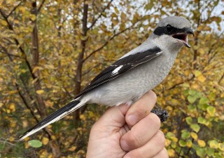 20.10. Aamu alkoi hieman erikoisesti, kun saimme perhekämppään tiedon aamuvakion siirtymisestä Eteläkarille vasta silloin, kun asemapuolen väki oli jo lähdössä lompsimaan sinne. Niinpä myöhästyimme Teon kanssa hieman alusta ja olimmekin jo luotokirvisen nuijanneet. Muutto oli aika vaisua, mutta keli oli aivan uskomattoman nätti! Aamun ensimmäinen parempi lintu meille oli vuorihemppo, joka lensi äännellen ylitsemme ja pian tämän jälkeen Teo nappasi taivaalta lähes kohti tulevan yksinäisen kuikkalinnun. Valo oli todella räikeä, joten emme kukaan heti oikein uskoneet silmiämme, kun lintu näytti niin kontrastikkaalta. Linnun jo lähes ohittaessa meitä, huusin itse, että: “Eihän tuo nyt vaan ”immeri” ole!” Ja olihan se – amerikanjääkuikka! Lintu meni sen verran korkealla ylitsemme kirkkaalla taivaalla, että onnistuin itse hukkaamaan linnun putken kanssa pyöriessäni ja niin taisi käydä parille muullekin, kun taas muutamilla muilla oli vaikeuksia löytää lintua ensinkään. Onneksi lopulta lintu löytyi kaikille ja määritys saatiin naulattua koko porukalla. Lähistöllä komppaamassa ollut Bruunin Mikakin ehti linnun hoitamaan.