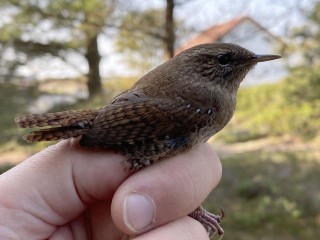 14.10. Olin taas aamusta verkoilla, jossa oli tuskallisen hiljaista, mutta yhdelle kierrokselle lähtiessäni kuulin lupaavan kuuloista tiksuttelua lähipuista. Meillä oli jo valmiiksikin pikkusirkkunauha soimassa yhdellä verkolla ja kuinka ollakaan seuraavalla kierroksella pääsin poimimaan pikkusirkun verkosta. Samaisella kierroksella tuli verkosta pikkuhiljaa runsastuneiden urpiaisten seassa myös syksyn ensimmäinen tundraurpiainen, joten Teon ja Artonkin kannatti ilman muuta singahtaa Peräkulmaan, jonka takia hiljainen aamuvakio jäi taas vaihteeksi kesken.
