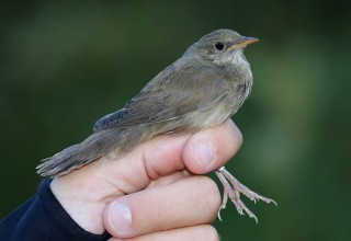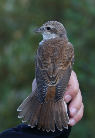 Krävelin suunnassa oli yhä vain hiljaista, sentään sepelkyyhky näkyi. Lopulta kolusimme saarta aika pienellä alueella hippiäisparviin keskittyen ja asemaa kohti kävellessä kuulimme taas yhden parven, jota oli samaan aikaan jallittamassa myös verkot jo sulkeneet Hanna ja Elissa. Parvesta löytyi siipijuovafyllari, jolla oli rengas jalassaan. Lintu oli todella korkealla taivasta vasten, mutta nähdyt tuntomerkit sopivat edellispäivänä rengastettuun taigauunilintuun.