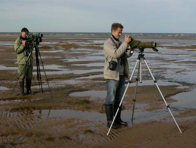 Pöllässä meri ei tuottanut uusia lajeja, mutta taivaalta löytyi seitsemän hanhen parvi, joka näytti alkuun merihanhiparvelta, pitkään merihanhien ja metsähanhien sekaparvelta, kunnes lopulta emme enää olleet varmoja muusta kuin, että kyllä siinä ainakin metsähanhia oli. Onneksi purussa selvisi, että paremmalla hollilla ollut Finnaturen joukkue oli nähnyt saman parven ja määrittänyt ne kaikki metsureiksi. Harmi vain, että Finnaturen porukka, joka seisoi Kuivasäikällä meidän ollessamme Pöllässä, havaitsi tuolloin myös taigauunilinnun, josta olimme siis vain minuutin ajon päässä. Linnusta tiedon saatuamme, olimme kuitenkin jo matkalla kohti Järventakustan peltoja, emmekä vaivautuneet lintua bongaamaan, sillä jo viestistä kävi ilmi, ettei koko Finnaturen porukkakaan ollut lintua nähnyt.