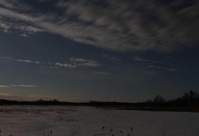 Herätys oli aamulla puoli kahdelta ja kahden jälkeen lähdimme ajelemaan kohti etelää. Käännyimme Untamon risteyksestä ja kellon lyötyä kolme oli mahdollista aloittaa ralli, joka alkoi siis tunnin liukumalla. Heti ensimmäisellä pysähdyksellä kuulimmekin huuhkajan, mutta kartan vilkaisu paljasti, että olimmekin väärällä Untamontiellä, emmekä siis olleetkaan omalla alueellamme! Alueellemme päästyämme aloimme pysähdellä tasaisin väliajoin edetessämme ensin kohti rajaa ja sitten itäisintä tietä pitkin etelään päin. Oli taas todella kylmä yö, eivätkä pysähdyksemme tuottaneet yhtään itään, ennen kuin Vilkon risteyksessä kuulimme kertaalleen ölähtäneen jonkun pöllön. Emme tästä yhdestä ölinästä uskaltaneet lajia määrittää mutta jompi kumpi lapin- tai viirupöllö se varmasti oli. Vilkossa kuulimme sitten lyhyesti aidon viirupöllön.