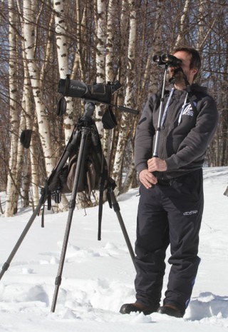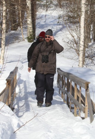 Lopulta olimme puoli yhdentoista aikaan Purnujärvellä, jossa päätimme taas upeassa kelissä alkaa kotkastaijin. Puoli tuntia oli aivan hiljaista, mutta sitten Mikko nyppäsi komean maakotkan! Ja heti perään löysin 2 merikotkaa ja vielä näiden perässä kolmannen! 7 pulmusta myös laskeutui tielle viereemme. Sitten reiluun tuntiin ei kuitenkaan enää näkynyt kuin 3 kanahaukkaa, varpushaukka sekä hiirihaukka. Pikkuhiljaa kaakkoinen tuuli yltyi niin kovaksi, että päätimme lähteä koluamaan vielä niitä kolkkia alueestamme, joissa emme olleet käyneet. Metsissä oli kuitenkin aivan hiiren hiljaista. Jokunen käpytikka näkyi mutta nekään eivät enää olleet äänessä. Raivokas valkoselkätikkajahtimme ei sekään tuottanut tulosta, vaikka pari varmaa paikkaa kävimmekin koluamassa. Rallin viime minuuteilla näimme vielä palokärjen ja pyyn ennen kuin lähdimme ajelemaan kohti Simpeleen Teboilia, jossa rallijoukkueiden oli tarkoitus syödä ennen purkua.