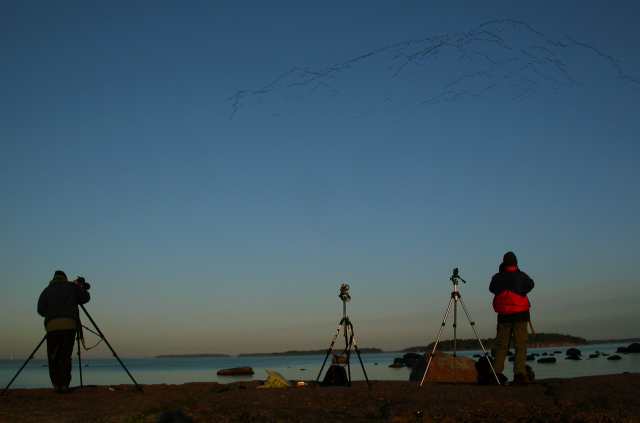 Jotta arktika ei olisi mennyt aivan täysin nuijiksi, suuntasimme (vaikka väsymys painoikin) pariksi päiväksi Virolahdelle. Massat olivat menneet jo muutamia päiviä aiemmin, mutta arvelimme, että sepelhanhia saattaisi vielä olla tulossa. Ensimmäinen staijipäivä meni kauniissa säässä nahkaa polttaessa. Havainnot jäivät vain Jannen (ja Komin Pekan) näkemään pikkukajavaan, riskilään sekä muutamaan muuhun tavalliseen vuodariin. Kurkelassa pääsimme sentään näkemään haarahaukkojen soidinlentelyä.