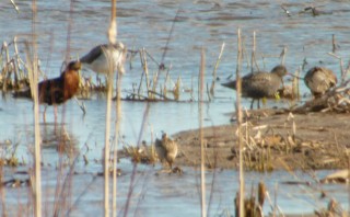 Jatkoimme Suurenjärvenlietteelle, josta oletin pikkukanadanhanhen löytyvän, mutta vaikka hanhia oli paljon, ei tava-hannesten seassa ollut kuin 14 valkoposkihanhea. Kahlaajalajisto oli mukavaa, parhaimpina 3 pikkutylliä ja 2 mustapyrstökuiria! Allun onneksi näimme myös naaras valkoselkätikan. Sorsatkin tietysti seulottiin tarkkaan, mutta sitten pitikin jo jatkella Jyrkilän kautta Tarassiinlahdelle. Tornin edustan puskissa näkyi pajulintu, muttei juuri muuta.
