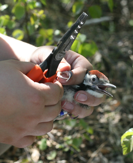 Tällä kertaa poikaset eivät yrittäneet karata, joten minun apuani ei oikeastaan tarvittu. Valkoselkätikka on ehdottomasti hienoin tikoistamme ja yksi lempilinnuistani, joten rengastukseen osallistuminen oli taas hieno kokemus. H.A.