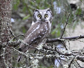 26.4. aloitin pönttökierrokset ja oli mukava todeta, että edellisvuonna pönttöömme asettunut viirupöllömamma oli taas hautomassa. Muissa Tyrjän suunnan pöntöissä ei kuitenkaan ollut elämää.